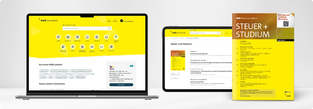 - Inhalte der Zeitschrift NWB Steuer und Studium online und optionaler Printbezug