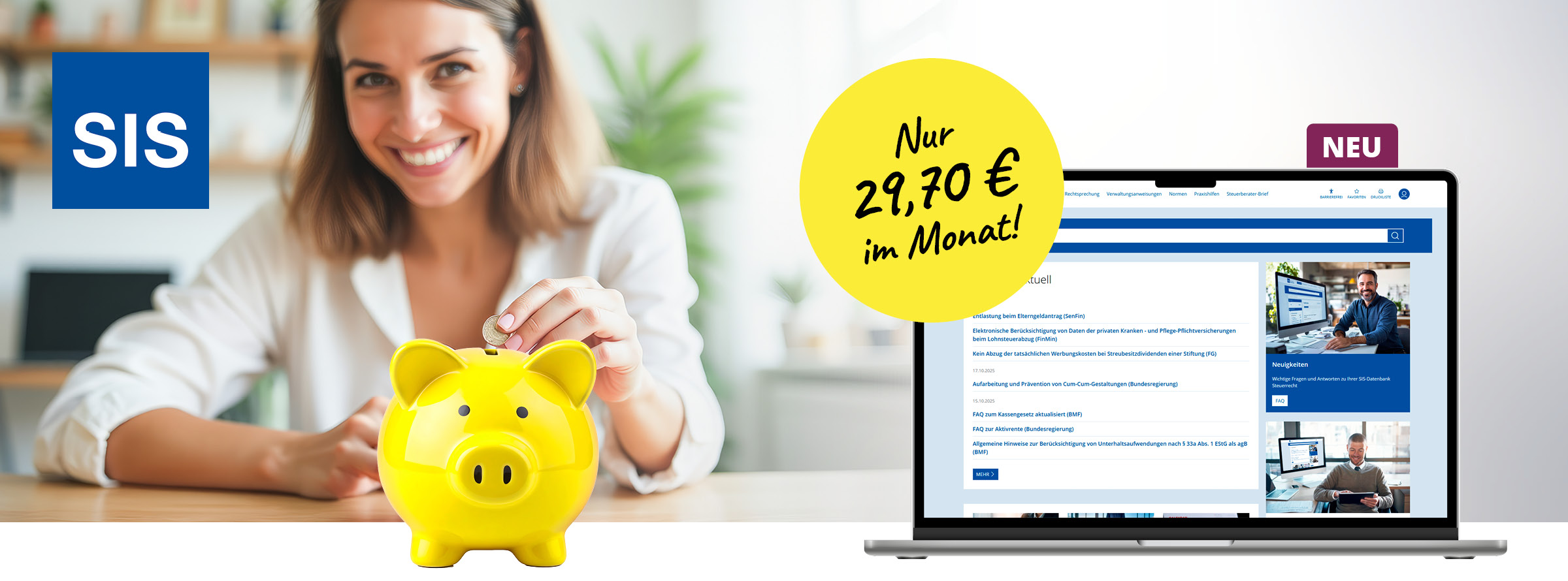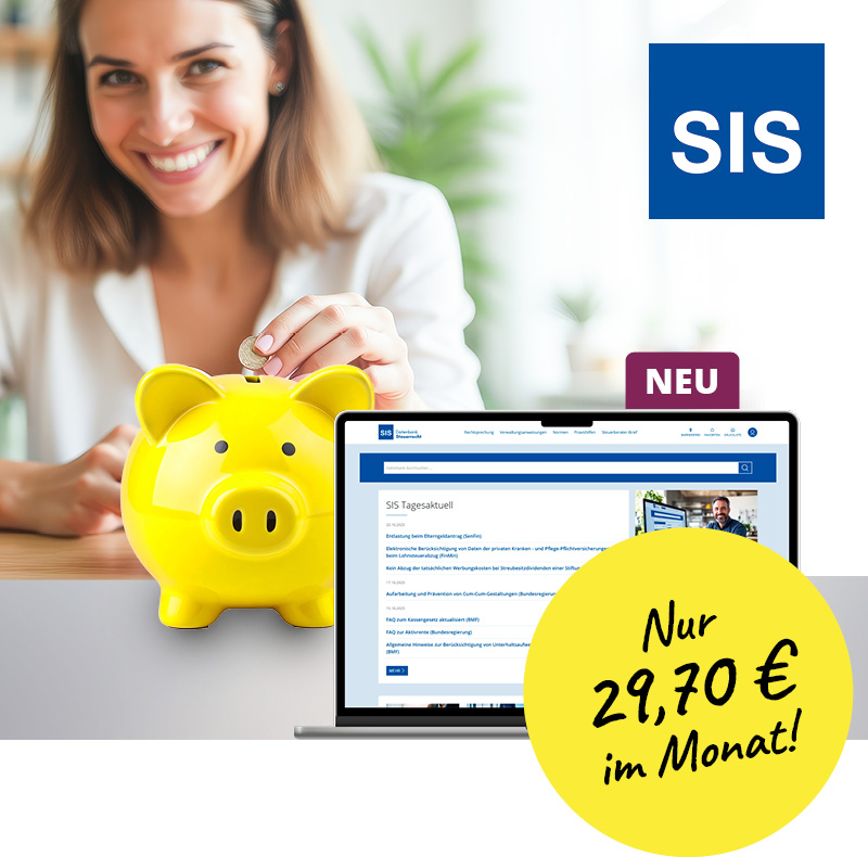 Die SIS-Datenbank ist deutlich günstiger als andere Steuerrechtsdatenbanken. Mitarbeitende der Finanzverwaltung profitieren von einem besonders günstigen Tarif – einfach anfragen! - Hält Sie zuverlässig auf dem Laufenden:
